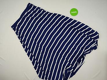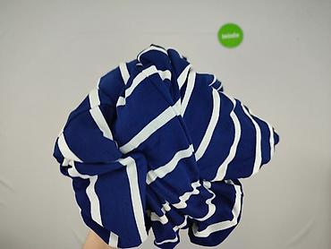 - Wzór: granatowe tło w białe, poziome oraz układane w „V” paski – efekt wysmuklający sylwetkę