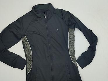 Damska bluza sportowa z długim rękawem, czarna - Rozmiar: S (metka “S”) - Fason: raglanowe rękawy, krótki zamek 1/4 z przodu, stójka - Rękawy z dekoracyjnym, poziomym pikowaniem/karbowaniem na ram...