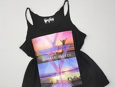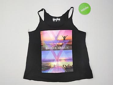 Top damski Atmosphere - Krój: bez rękawów, klasyczny tank top z delikatnie dłuższym tyłem (zaokrąglony dół). - Wzór: czarne tło w kolorowe bukiety kwiatów (żółte, niebieskie, zielone, czerwone akc...