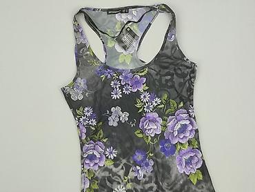 Top damski Atmosphere – koszulka na ramiączkach - Fason: dopasowany tank top z wycięciem typu bokserka na plecach - Wzór: kwiatowy; róże i drobne kwiaty w odcieniach fioletu i lila na ciemnoszarym...Rozmiar:
