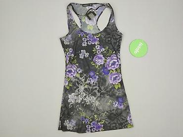 Top damski Atmosphere – nowy - Fason: dopasowany top bez rękawów, sportowy tył (racerback) - Wzór: kwiatowy; róże i drobne kwiaty w odcieniach fioletu, lawendy i zieleni na ciemnym tle - Materiał:...