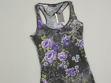 Top damski Atmosphere – nowy - Fason: dopasowany top bez rękawów, sportowy tył (racerback) - Wzór: kwiatowy; róże i drobne kwiaty w odcieniach fioletu, lawendy i zieleni na ciemnym tle - Materiał:...