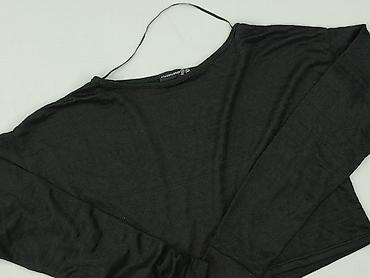 Czarny damski crop top z długim rękawem Sinsay - Krój: dopasowany, cropped; ozdobny przeszyty szew pod biustem podkreślający sylwetkę - Dekolt: okrągły - Rękaw: długi - Materiał: prążkowana dziani...