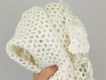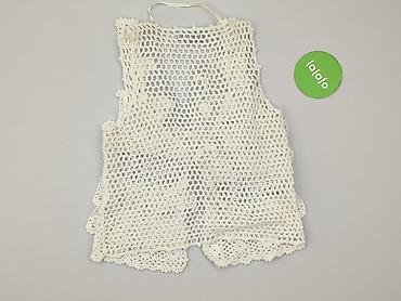 - Wzór/wykonanie: rękodzielniczy look – szydełkowe, kwiatowe motywy ułożone w falbanowe pasy z przodu; tył ażurowy, siateczkowy
