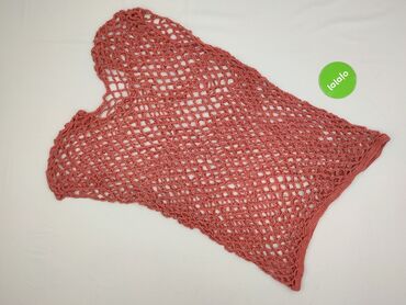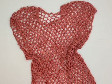 Ażurowe poncho/sweter narzutka z dzianiny – intensywna czerwień - Model: luźne poncho z krótkimi, szerokimi rękawami i dekoltem w serek - Krój: oversize, asymetryczny dół, lekka siatkowa faktura -...