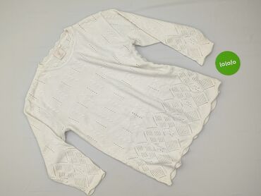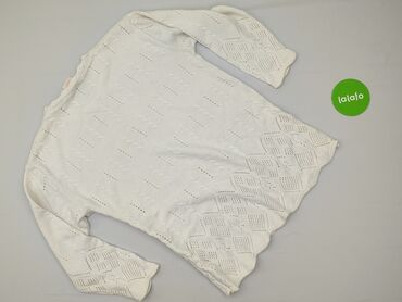 Ażurowy sweter damski, rozmiar XL - Kolor: kremowy/ecru - Fason: luźny, z okrągłym dekoltem - Materiał: 100% akryl (metka na zdjęciu) - Splot: dekoracyjny, ażurowy z powtarzającym się wzorem; falo...