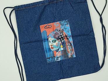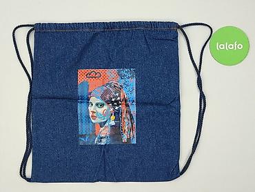Jeansowy worek/plecak typu gym bag z nadrukiem Mona Lisy w stylu street art. - Materiał: denim (jeans), miękki i lekki - Kolor: granatowy - Nadruk: kolorowa grafika inspirowana Mona Lisą (neonowe ...Typ: