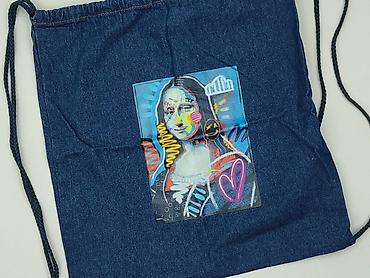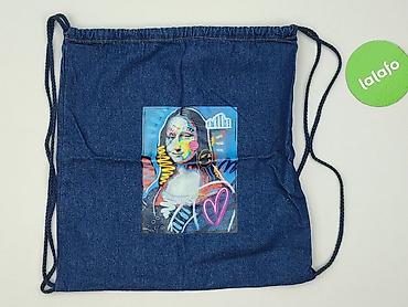 Jeansowy worek/plecak typu gym bag z nadrukiem Mona Lisy w stylu street art.