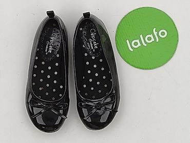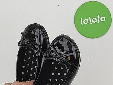 Dziewczęce balerinki niemowlęce - Rozmiar: 25 (oznaczenie na podeszwie) - Kolor: czarny, z delikatnym połyskiem - Model: baleriny z paskiem zapinanym na rzep - Ozdoby: kokardki z aplikacją „kryszt...