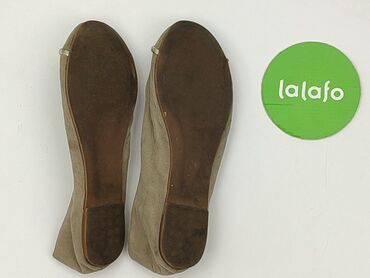 Baleriny damskie z tasiemkami do wiązania - Rozmiar: 39 (oznaczenie na spodzie) - Kolor: pudrowy/beżowy, satynowy połysk - Cholewka: materiał tekstylny o gładkim, lekko połyskującym wykończeniu - ...
