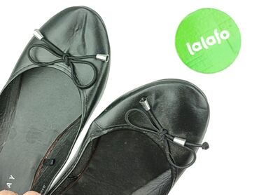 Baleriny damskie Sinsay - Model: peep toe (otwarte palce) - Kolor: czarny - Ozdoba: materiałowa kokarda na nosku - Cholewka: tkanina - Wkładka: beżowa, miękko wyściełana - Podeszwa: płaska - Rozmi...