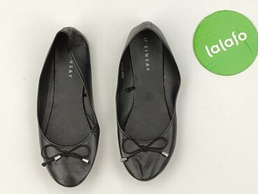 Baleriny damskie Sinsay – Basic Collection - Rozmiar: 38 (oznaczenie wewnątrz) - Kolor: czarny - Cholewka: zamszopodobna (miękka, matowa faktura) - Nosek: szpic - Zapięcie: wsuwane - Wkładka: synt...