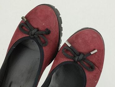 Baleriny damskie Sinsay - Rozmiar: 40 - Kolor: burgundowy / wiśniowy - Materiał wierzchni: lakierowany (połysk) - Nosek: zaokrąglony - Detale: kokardki na cholewce, lamówka w kolorze cholewki - Wk...