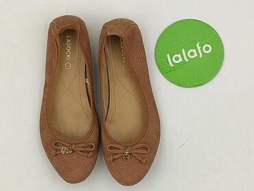 Baleriny damskie Wojas - Marka: Wojas - Model: klasyczne baleriny z kokardką - Rozmiar: 38 (oznaczenie na podeszwie) - Kolor: karmelowy/brązowy - Cholewka: skóra naturalna - Wyściółka: skórzana, p...
