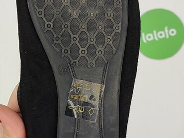 Dodatkowe informacje z etykiet na podeszwie: oznaczenia materiałów oraz rozmiar 37. Uniwersalny, minimalistyczny fason sprawdzi się do spodni i sukienek.