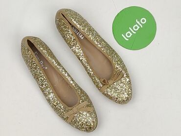 Baleriny damskie EkoNika Collection - Rozmiar: 39 (oznaczenie na podeszwie) - Kolor: jasne złoto/szampański, efekt połysku - Cholewka: syntetyczna z drobną, „łuskowaną” fakturą - Wnętrze: jasna, p...Stan: