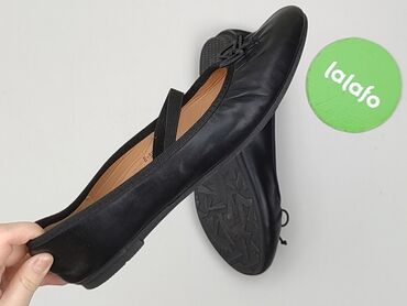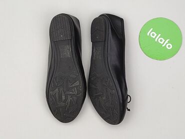 Czarne baleriny damskie z noskiem w szpic i ozdobną kokardką. - Rozmiar: 36 (oznaczenie na wkładce i podeszwie) - Kolor: czarny - Cholewka: materiał syntetyczny o lekko połyskującej, fakturowanej ...