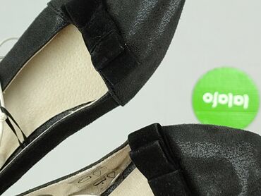 Czarne czółenka Clara Barson, rozmiar 37. - Klasyczny fason baleriny na niskim, stabilnym klockowym obcasie - Cholewka z materiału o wyglądzie zamszu, z lakierowanymi wstawkami przy pięcie i wykoń...Stan:
