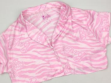 Koszula damska Bershka z krótkim rękawem - Rozmiar z metki: S (EUR S / USA S / MEX 26) - Kolor bazowy: jasny róż - Wzór: tropikalne liście i lamparty - Fason: krótka, lekko pudełkowa, z zaokrąglon...