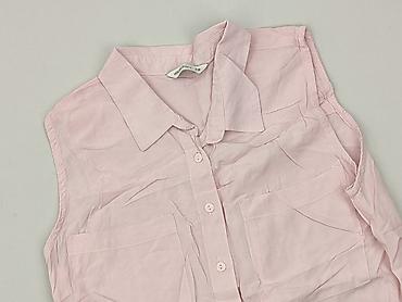 Różowa koszula bez rękawów House – damska, rozmiar M. - Fason: taliowany, zapinana na guziki z przodu - Dekolt: w kształcie litery V ze stójką - Kieszenie: dwie naszywane kieszonki na piersi - Mat...
