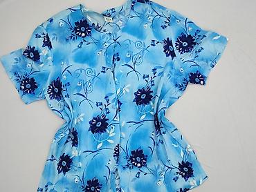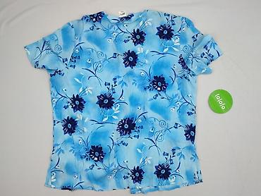 Bluzka damska, niebieska - Fason: luźny T‑shirt/tunika z krótkim rękawem - Dekolt: szeroki, z marszczeniem i elastyczną, karczkową gumką - Zapięcie: krótka listwa z trzema białymi guziczkami z prz...