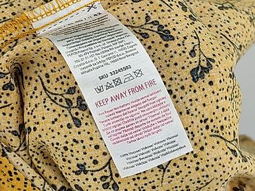 - Wzór/kolor: musztardowo‑żółte tło w drobny czarny roślinny nadruk i kropki