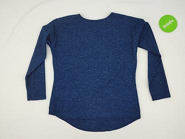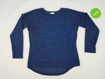 Bluzka damska BEL0VED WOMAN, rozmiar M. - Fason: z długim rękawem, zaokrąglony dół - Kolor: granatowy melanż z białymi, poziomymi paskami z przodu i na rękawach - Tył: gładki granatowy melanż z de...