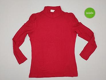 Czerwona damska bluzka z golfem i długim rękawem - Fason: dopasowana bluzka z niskim golfem (stójka) - Rękaw: długi - Materiał: miękka, elastyczna dzianina (prawdopodobnie mieszanka bawełny z elas...