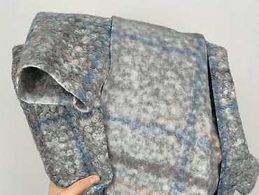 Szary damski płaszcz/ponczo z paskiem - Kolor: jasnoszary melanż - Fason: otwarty, bez zapięcia; szerokie, kaskadowe klapy - Pasek do przewiązywania w talii + szlufki - Długość: za biodra (około d...