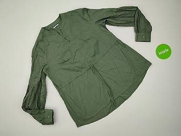 Damska tunika/koszula w odcieniu khaki/szaro-oliwkowym. - Fason wydłużony, lekko taliowany, z kołnierzem i zapięciem z przodu (ukryta listwa – bez widocznych guzików). - Rękawy 3/4. - Na piersi ...