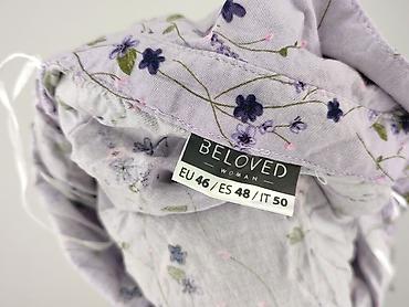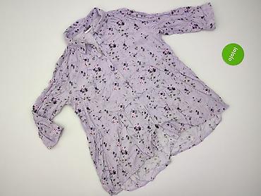 Bluzka/tunika damska w kolorze liliowym (lawendowym). - Fason oversize z krótkim, szerokim rękawem - Okrągły dekolt z listwą i rzędem dekoracyjnych guzików z przodu - Dodatkowe guziki na ramionach...Rozmiar: