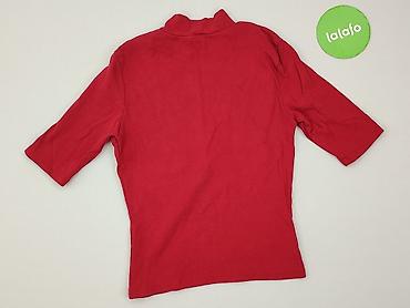 Bluzka damska Bershka (#BSKGIRL), rozmiar M - Kolor: intensywna czerwień z drobnym, kwiatowym nadrukiem - Fason: lekko luźny, z marszczeniami; okrągły dekolt z pęknięciem i zapięciem na guzik z ty...