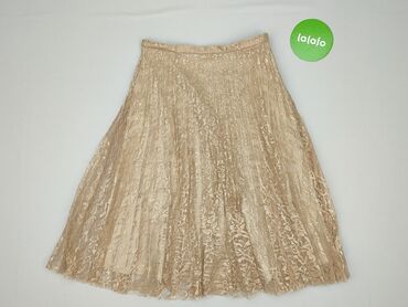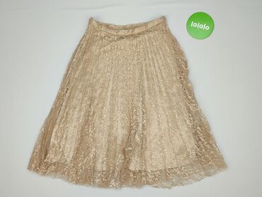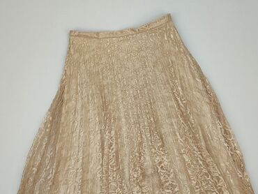 Beżowa spódnica midi z zakładkami - Fason: rozkloszowany, z głębokimi, miękko układającymi się zakładkami z przodu i z tyłu - Długość: midi - Talia: wysoka, gładki pas - Zapięcie: kryty suwak z bo...