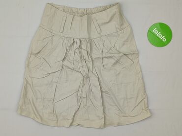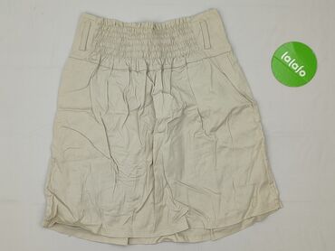 Spódnica damska w kolorze beżowym, o prostym kroju do kolan. - Materiał: lekka tkanina bawełniana z domieszką (miękka, nieelastyczna w dotyku) - Talia: szeroka guma – wygodne dopasowanie bez zapięc...