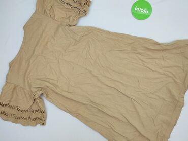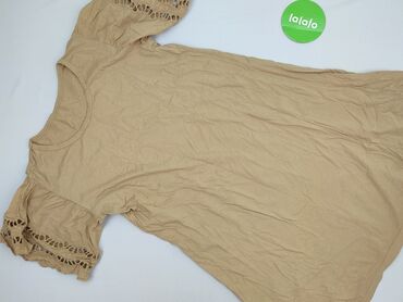 Sukienka damska z falbanami, beżowa - Krój: luźny, rozkloszowany, zbudowany z kilku poziomych paneli z delikatnymi marszczeniami/falbanami. - Rękawy: krótkie, z subtelną falbanką. - Dekolt: okrągł...