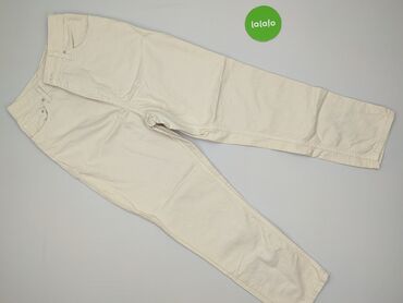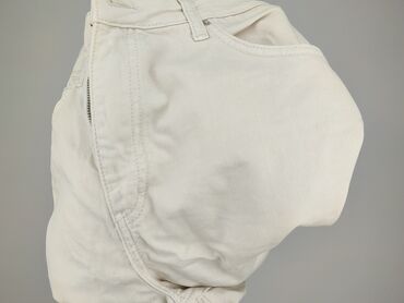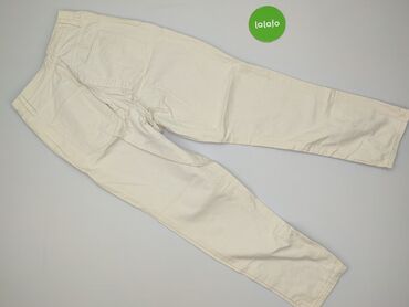 Damskie spodnie jeansowe w kolorze jasnego beżu/ecru. - Krój: klasyczny, dopasowany, zwężane nogawki - Stan w pasie: średni - Zapięcie: suwak + metalowy guzik - Kieszenie: 5 (dwie z przodu + mała ...