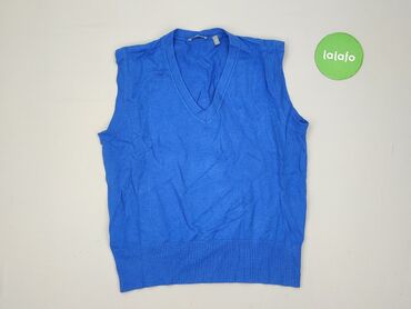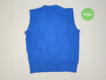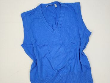 Niebieski, dziany bezrękawnik z dekoltem w serek. - Klasyczny fason: bez rękawów, dekolt V, ściągacze przy wykończeniach (dekolt, pachy, dół). - Gładki ścieg, jednolity kolor denim/steel blue. - M...