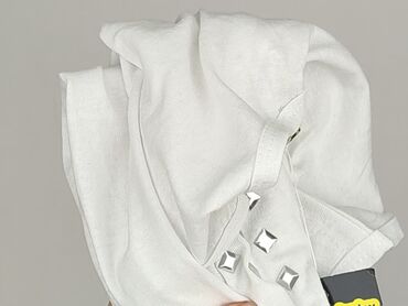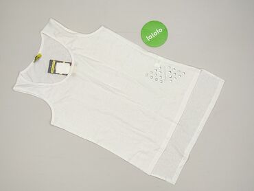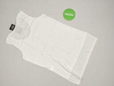 Biała damska bluzka bez rękawów - Krój: luźny, z opuszczonymi ramionami (cap sleeves), lekko wydłużony tył z zaokrąglonym dołem - Dekolt: w kształcie litery V z krótką stójką - Rozmiar: XL (na met...