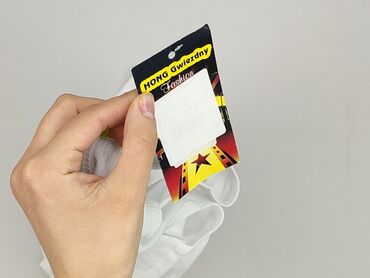 Bluzka damska F&F - Kolor: biały z czarnym, kontrastowym pasem u dołu - Fason: luźny, lekko dłuższy, z krótkim rękawkiem - Dekolt: z przodu okrągły; z tyłu efektowne wycięcie z geometrycznymi pask...