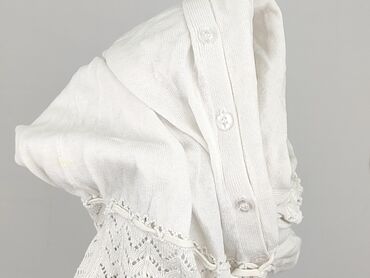 Biała narzutka/bolerko damskie z frędzlami - Krój: luźna, kimonowa narzutka z krótkim rękawem, lekko zaokrąglony dół, wiązanie z przodu. - Detale: dekoracyjne koronki i frędzle w kolorze ecru wzdł...