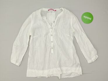 Bluzka damska z ażurowej bawełny, rozmiar S (EUR/US S). - Kolor: biały, haft angielski z drobnymi wycięciami i subtelnym, wytłaczanym wzorem. - Krój: prosty, lekko luźny. - Rękawy: 3/4, bufiaste...