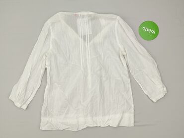 Bluzka damska z miękkiej, marszczonej tkaniny (double gauze) – kolor ecru/kość słoniowa. - Skład: 100% bawełna (metka w środku) - Rozmiar z metki: L - Krój: luźny, przewiewny - Rękaw: krótki - Dek...
