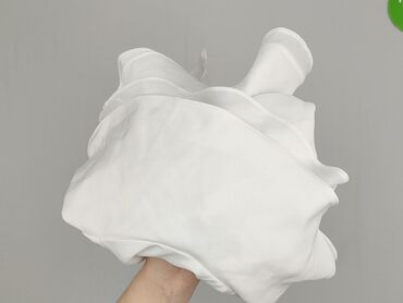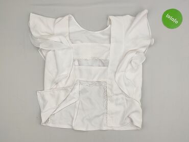 Biała koszulka/bluzka z krótkim rękawem, rozmiar M. - Krój: prosta linia, okrągły dekolt bez ściągacza, zapięcie na guziki wzdłuż całego przodu. - Rękawy: krótkie, lekko luźne. - Materiał: lekko...