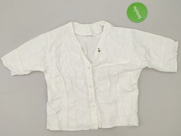Biała koszula damska z długim rękawem, zapinana na guziki. - Tkanina: 100% bawełna (informacja z metki). - Klasyczny kołnierzyk. - Ażurowe, haftowane wycięcia na przodzie w dekoracyjny wzór. - ...