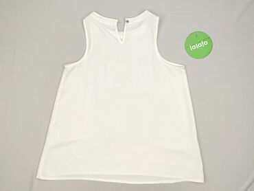 Biała koszulowa bluzka bez rękawów - Klasyczny krój z szeroką listwą na przodzie i dekoltem w kształcie litery V - Prosta, lekko luźna sylwetka; długość do bioder - Materiał: 95% bawełna, 5% spand...