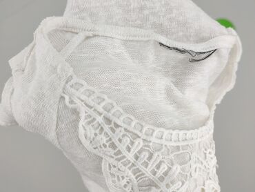 Biała bluzka koronkowa z ażurowym haftem - Krój: dopasowany, długość do bioder - Dekolt: w kształcie litery V z szeroką koronką - Rękawy: krótkie, w całości z dekoracyjnej koronki o falowanym wyko...