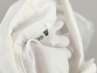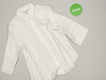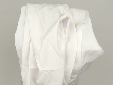 Biała koszula/bluzka damska z krótkim rękawem i zapięciem na guziki na całej długości. Dekolt półokrągły z delikatnym wycięciem przy listwie guzikowej. Materiał: 100% poliester (lekko żakardowa, dr...