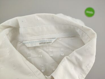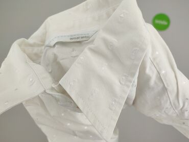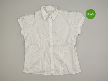 Biała koszula damska z krótkim rękawem - Krój dopasowany, zapinana z przodu na rząd guzików - Delikatny kołnierzyk stójka - Kryty zamek przy karku ułatwiający zakładanie - Materiał: 95% poliester,...