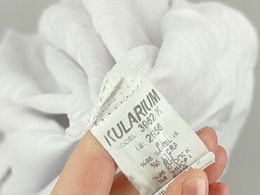 Biała koszula damska z krótkim rękawem (nietoperz/opuszczone ramiona), zapinana na guziki z przodu. Klasyczny kołnierzyk, zaokrąglony dół. Lekka, przewiewna tkanina. Kolor: biały. Rozmiar z metki: ...