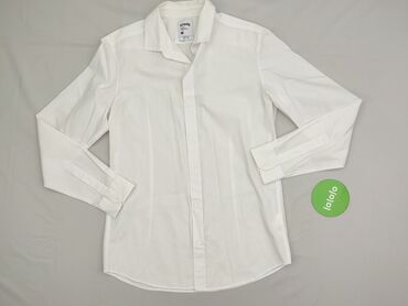 Koszula męska Sinsay – Men's Collection - Rozmiar: M - Fason: regular fit - Kolor: biały - Długi rękaw z mankietami na guziki - Klasyczny kołnierzyk - Zapięcie na guziki na całej długości - Kieszon...